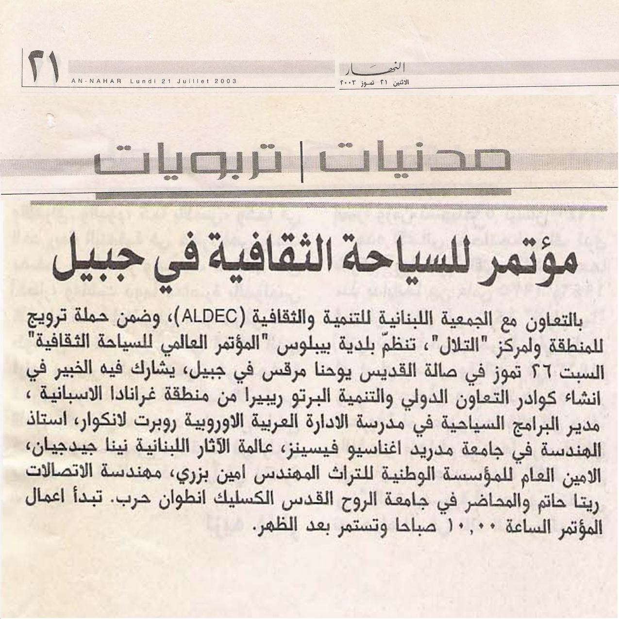 La création d’opportunités de travail dans les régions rurales, l’encouragement des jeunes à rester au Liban et la professionnalisation des mains-d’oeuvre dans le domaine touristique et hotellier furent les sujets traités dans l’orientation professionnelle et éducative organisée par l’Association des Mères de Akkar et sa pésidente Dr. Célina Riad Rahhal en collaboration avec l’ONG Promotion et Développement Social (PRODES) et l’Institut de Management et de Services (IMS) lancé par la Municipalité de Jbeil à Maad.
